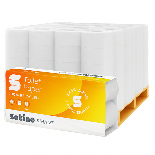 ProduktbeschreibungDas Satino Smart Toilettenpapier verbindet Komfort mit Nachhaltigkeit. Hergestellt aus 100 % Recyclingpapier, überzeugt es...