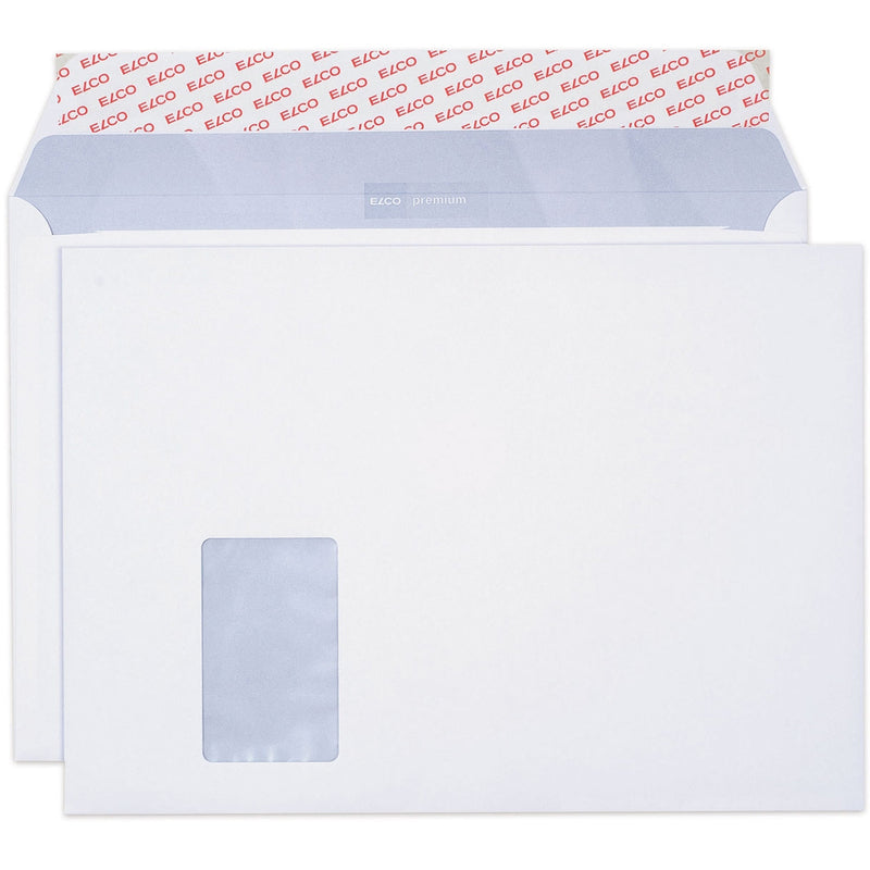 Die ELCO Premium Kuverts im Format C4 stehen für hochwertige Verarbeitung und zuverlässige Qualität im täglichen Schriftverkehr. Das hochweisse Papier mit 120 g/m² sorgt für Stabilität und eine angenehme Haptik. Das Fenster auf der Vorderseite links ermöglicht eine effiziente Adressierung und einen professionellen Dokumentenversand.