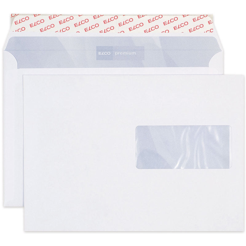 Die ELCO Premium Kuverts im Format C5 stehen für eine hochwertige Ausführung im täglichen Schriftverkehr. Das hochweisse Papier mit 100 g/m² bietet eine angenehme Haptik und zuverlässige Stabilität. Das Fenster auf der Vorderseite links ermöglicht eine effiziente Adressierung, während der Haftklebeverschluss ein sicheres und zeitsparendes Verschliessen gewährleistet.
